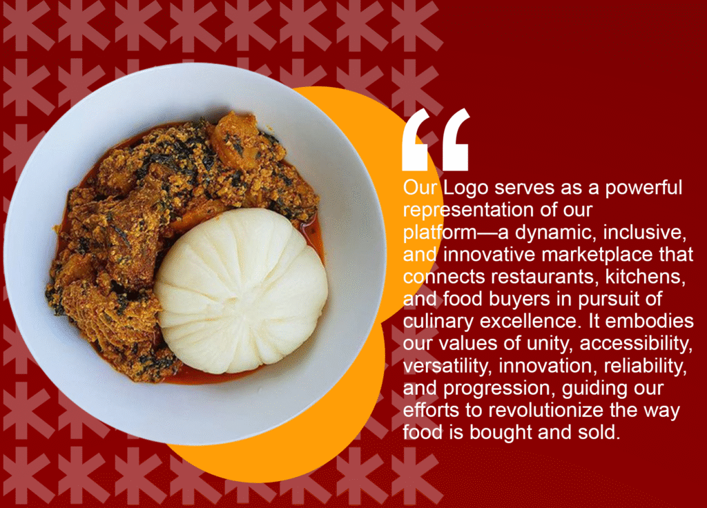 ThisLogo serves as a powerful representation of our platform a dynamic, inclusive, and innovative marketplace that connects restaurants, kitchens, and food buyers in pursuit of culinary excellence. It embodies our values of unity, accessibility, versatility, innovation, reliability, and progression, guiding our efforts to revolutionize the way food is bought and sold.